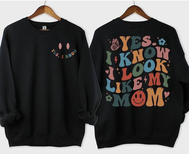 Yes I Know I Look Like My Mom Sweatshirt, Funny Mom Shirt, My Mom Shirt, Funny Sayings T-shirt, sweater and Hoodie Cotton