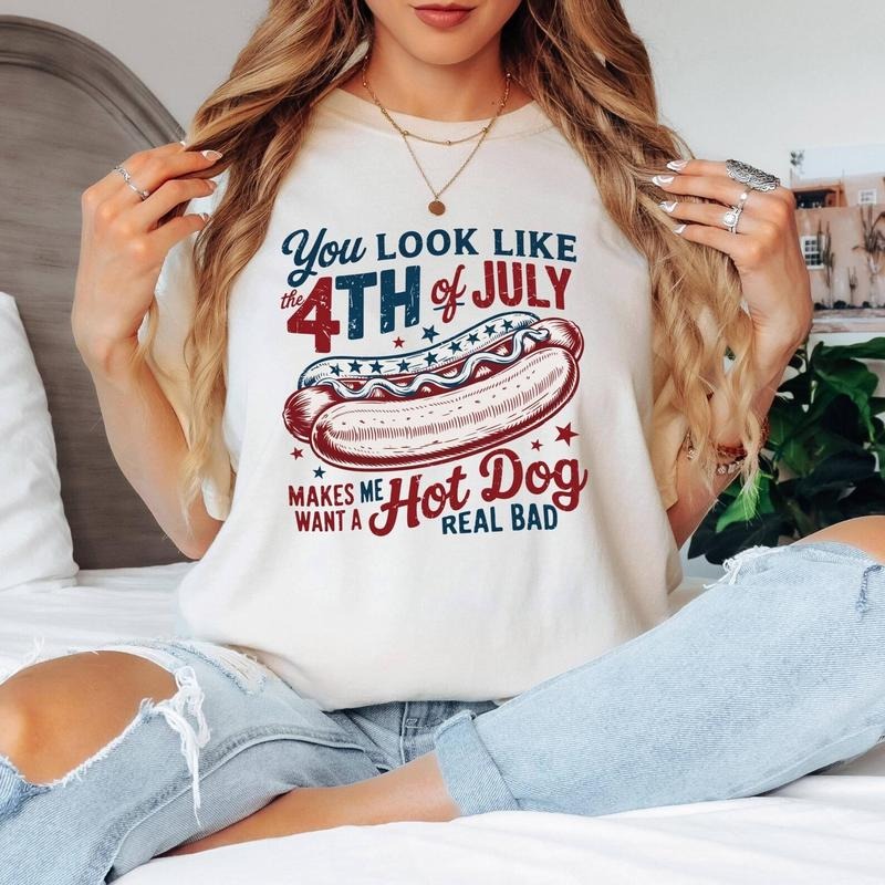 You Look Like The 4th Of July, Makes Me Want A Hot Dog Real Bad Shirt, Independence Day Tee, Funny 4th July Shirt, Hot Dog Lover Shirt