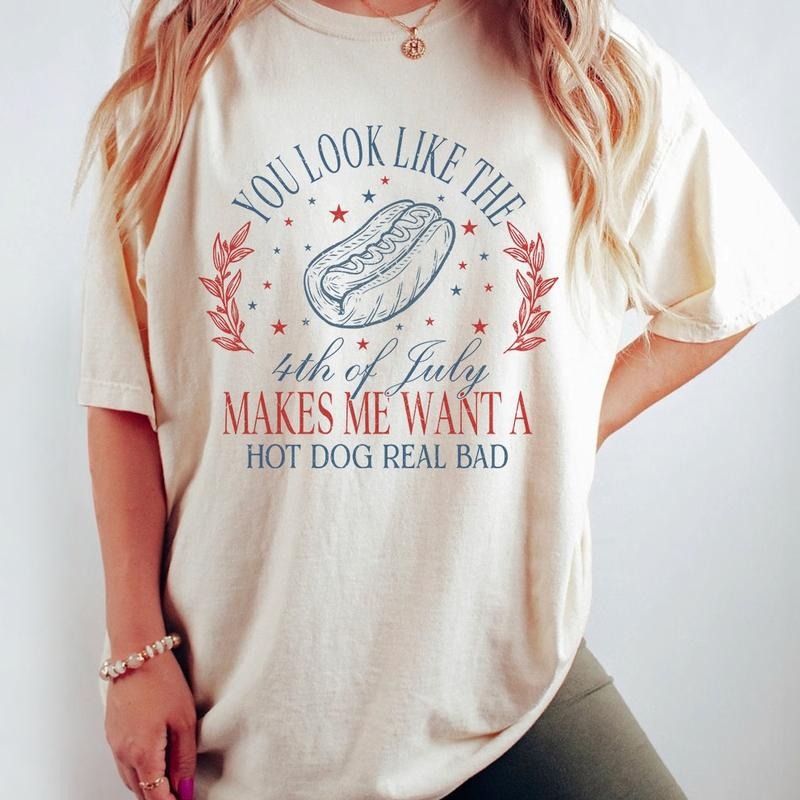 You Look Like The 4th Of July Makes Me Wat A Hot Dog Real Bad Shirt, Funny Patriotic Shirt, America Shirt, Independence Day T Shirt, USA Shirt, Funny 4th of July Gift T-shirt, Hot Dog Shirt, Independence Day Parade Outfits, 4th Of July Women Top